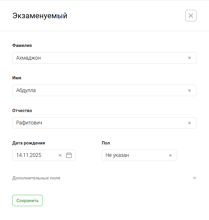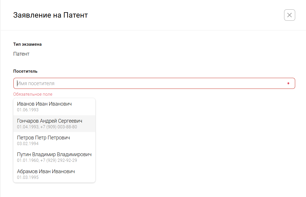 - В случае, если заявление уже создано и пользователь есть в системе, то при записи на экзамен выберите этого пользователя из списка при записи на данный экзамен: