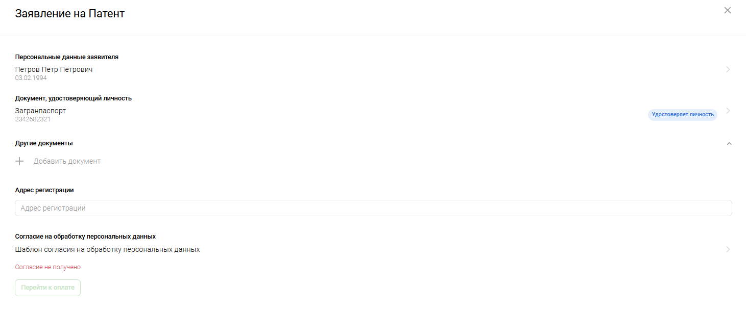 После завершения заполнения заявления можно совершать оплату. Для этого нажмите Перейти к оплате и прикрепите чек оплаты, номер документа и отметьте чек-бокс Оплата прошла